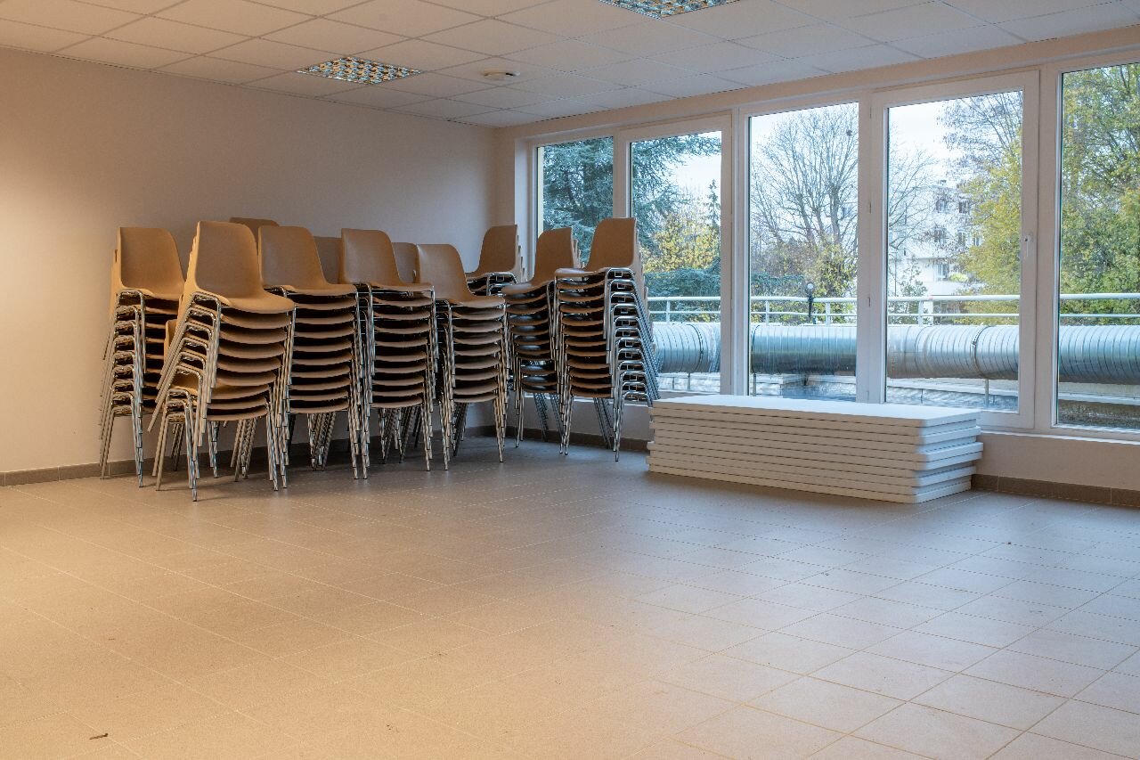 Salle du Grand Balcon Construit en 2014, au-dessus du restaurant scolaire, la salle du Grand Balcon a une capacité d'accueil maximale de 60 personnes. Pour des raisons de voisinage, la réservation de cette salle exclut tout événement avec de la musique. Son usage est plutôt réservé à des séminaires, des assemblées générales, des groupes de travail, des manifestations associatives, etc. Elle possède néanmoins une cuisine équipée ainsi que des toilettes indépendantes. Les dimensions de la salle sont de 112 m². |