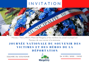 Cérémonie d'honneur La journée nationale du Souvenir des victimes et des héros de la déportation rend hommage à tous les déportés qui étaient dans les camps de concentration et d’extermination. Cette journée vise à rappeler à chacun ce drame historique mais aussi à ne pas oublier pour que de tels faits ne puissent se reproduire. Afin d’honorer leur mémoire, la mairie de Margency organise une cérémonie, le dimanche 24 avril à 11h30, Square du souvenir. Ce même jour, le 2ème tour des élections présidentielles aura lieu, n’oubliez pas d’aller voter. |