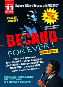 Olivier Sorel en spectacle Afin de poursuivre une après-midi riche en découvertes avec la chasse aux trésors intergénérationnelle, la ville de Margency vous propose le samedi 11 juin à 16h30 à l'espace Gilbert Bécaud, le spectacle chanté d'Olivier Sorel qui reprendra de grands noms de la chanson française. Au programme : Jean Ferrat, Jacques Brel, Gilbert Bécaud et bien d'autres ! |