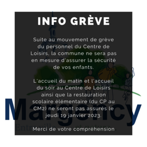 Suite au mouvement de grève du personnel du Centre de Loisirs, la Commune ne sera pas en mesure d’assurer la sécurité de vos enfants.