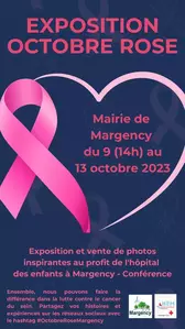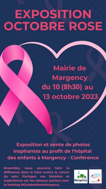 OCTOBRE ROSE Du mardi 10 octobre à partir de 8h30 au vendredi 13 octobre, la Mairie de Margency participe à Octobre Rose avec l'accueil d'une exposition sur la sensibilisation du cancer du sein. Vente de photos au profit de l'hôpital des enfants à Margency. Ensemble, nous pouvons faire la différence dans la lutte contre le cancer du sein. Partagez vos histoires et expériences sur les réseaux sociaux avec le hashtag #OctobreRoseMargency ! |