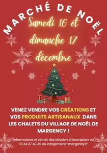 Il reste encore quelques chalets de disponibles pour le Marché de Noël de Margency qui aura lieu le samedi 16 et le dimanche 17 décembre ! Si vous avez des créations ou des produits artisanaux à faire découvrir aux Margencéens, demandez votre dossier d’inscription au 01 34 27 40 49 ou info@mairie-margency.fr . |