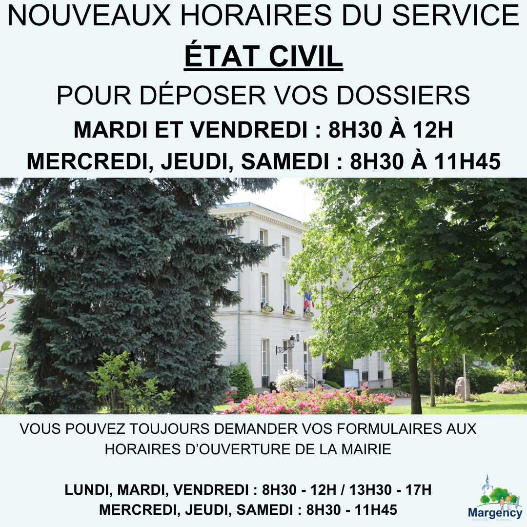 Nouveaux horaires du service ETAT CIVIL