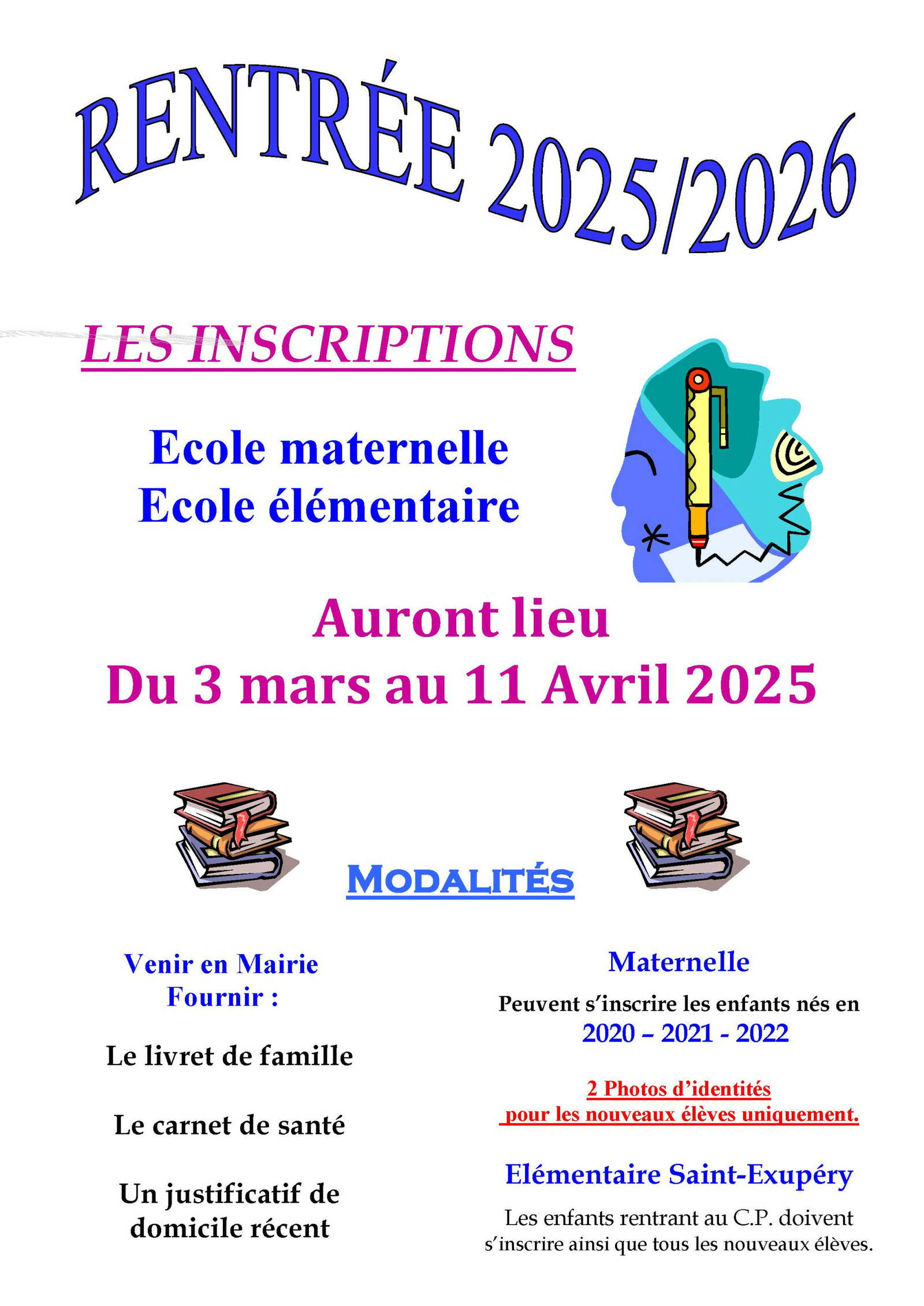 Inscriptions rentrée scolaire