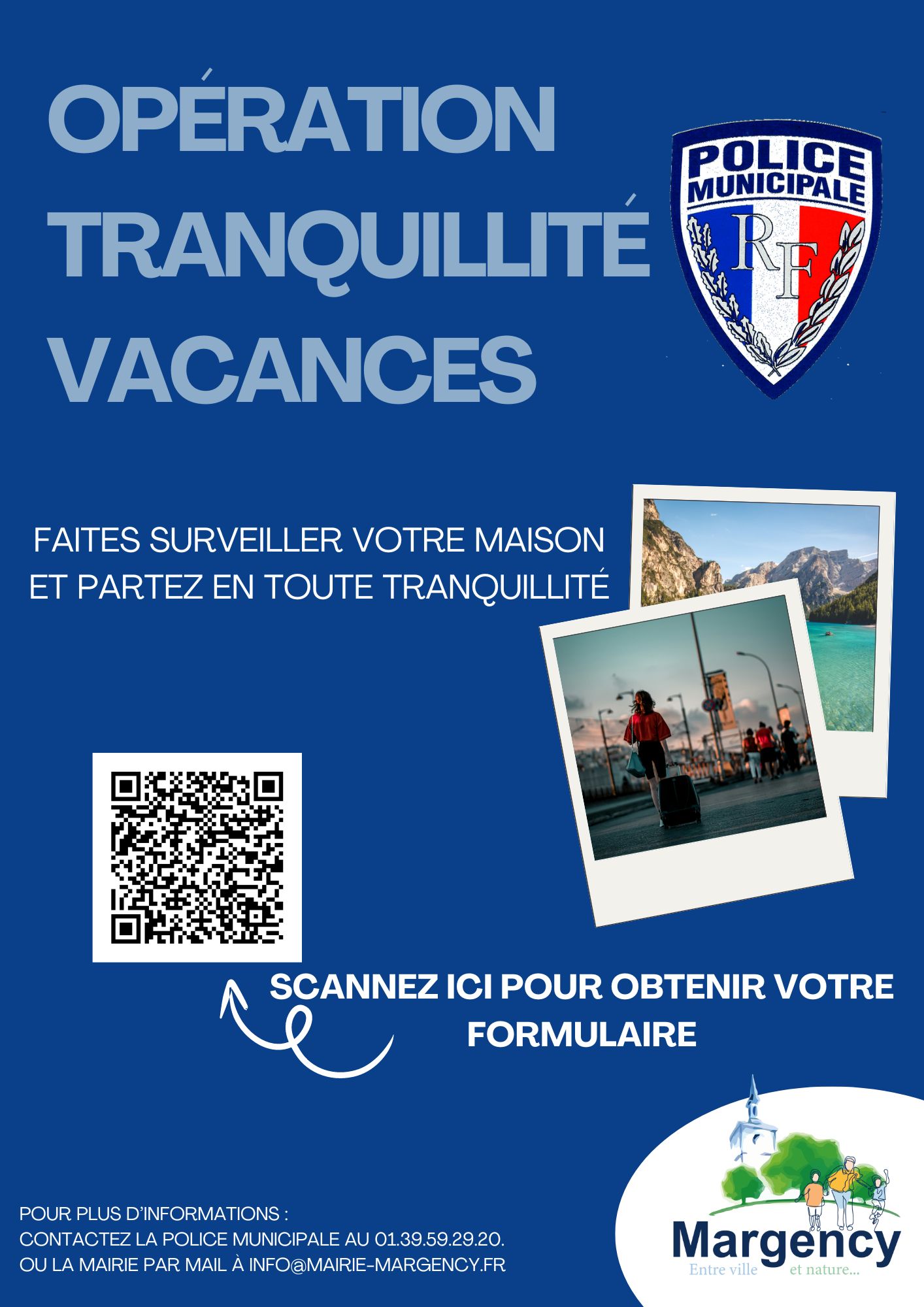 Opération Tranquillité Vacances L'été est là ! Avant de partir en vacances, pensez à la sécurité de votre domicile. La Police Municipale est là pour vous aider avec l'Opération Tranquillité Vacances (OTV) !