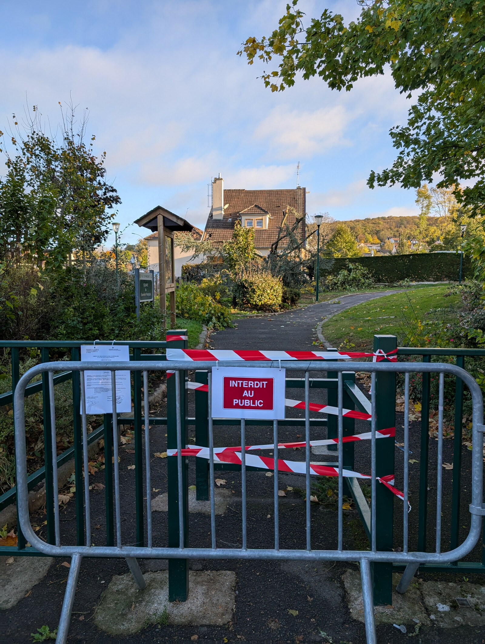 Parcs fermés Suite au passage de la tornade ce lundi 20 octobre, tous les parcs de la ville sont fermés. Soyez prudents et évitez tout déplacement qui ne serait pas indispensable. Démarchages non-autorisés La mairie vous informe qu'elle n'a mandaté aucune entreprise (couvreur, espaces verts etc.). La police se rend sur place suite à divers signalements de sociétés qui interviennent sans autorisation des propriétaires. Ne signez aucun document. Si vous avez des dégâts, prenez des photos et contactez votre assureur. Nos services avec l'aide des villes voisines travaillent actuellement pour sécuriser les sites. Nous restons à votre écoute pour toute question. Prenez soin de vous. Prenez soin de vous, restez prudents et suivez l'actualité sur les réseaux des autorités.
